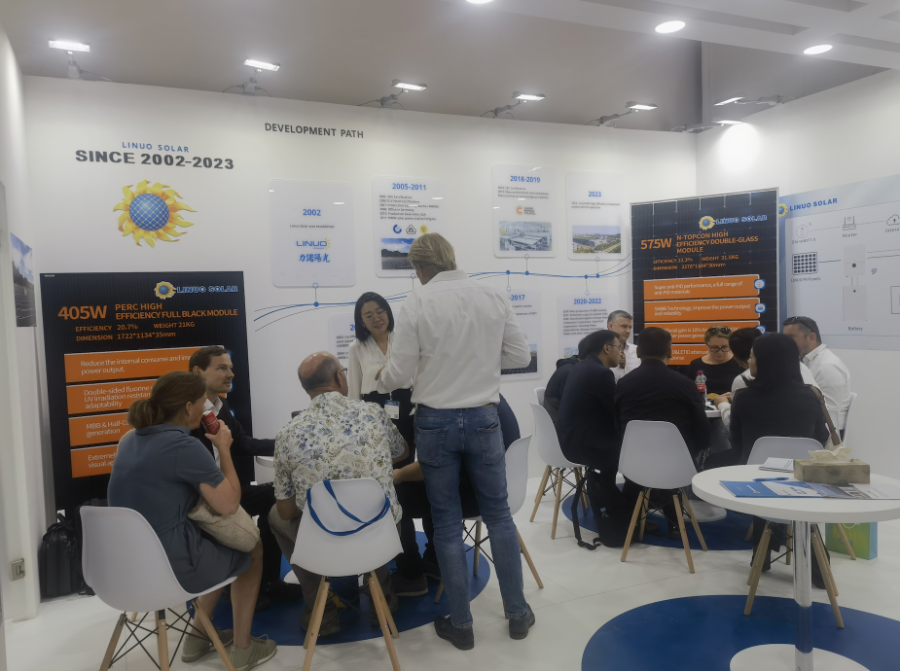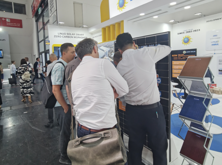 在全球綠(lǜ)色變革,邁向零碳的(de)願景下(xià),各國(g≤÷uó)各界對(duì)此趨之若鹜。力諾光(guāng)≈↔± 伏此次參展帶來(lái)了(le)N型、P型、全黑(hēi)182等系列高(gāo)效光(guāng)伏組件(γ≠☆jiàn)、ESS智能(néng)儲能(néng)系統以及•©→>新品陽台太陽能(néng)系統,面向歐洲市(shì∑π)場(chǎng)客戶集中展示,燃爆展會(huì)現(xiàn)場(c±☆Ωhǎng)。